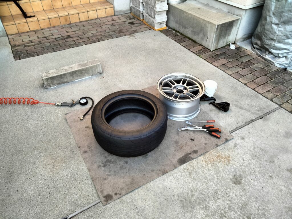 帰宅後、明日の雨を前に今日やれる作業を考えた。新車の納車まであと15日。パーツ移植の準備として、回収したENKEI RPF1RS 4本の状態確認を先に済ませておくことにした。